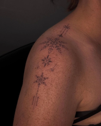 Hier fassen wir zwei Tattoostile ein wenig zusammen. Fineline Tattoos bestehen aus feinen Linien und wirken in ihrer filigranen Ausarbeitung alles andere als simpel. Die Künstlerinnen und Künstler wählen dafür kleine Motive aus, die sie mit unzähligen Details versehen. Fineline Tattoos können eigentlich nur Artists wirklich sauber stechen, die eine Menge Erfahrung haben. Das liegt an der Art, wie die Linien unter die Haut gestochen werden. Deine Haut besteht aus verschiedenen Schichten. Die Nadel bringt die Tinte zwischen zwei Hautschichten. Ist das zu oberflächlich, verblasst das Tattoo schnell und verschwindet vielleicht sogar teilweise. Denn Deine Haut erneuert sich ständig. Wird zu tief gestochen, verlaufen die Farben, der Körper transportiert die Pigmente teilweise ab. Beim Fineline Tattoo muss deshalb wirklich jeder einzelne Nadelstich an genau der richtigen Stelle sitzen. Und das ist gar nicht so einfach. Single Line Tattoos werden manchmal als eigener Tattoostil gehandelt, manchmal als Unterart des Fineline Tattoos. Hier kreieren die Künstler und Künstlerinnen das ganze Motiv aus einer einzigen, durchgezogenen Linie, die sich immer wider mit sich selbst verschlingt, kreuzt und so ein komplexes Motiv schafft.